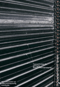 Der GSWT®-Wärmeaustauscher zeichnet sich durch eine äußerst geringe Verschmutzungsneigung aus. Diese wird durch die glatten und durchgehenden Lamellen in Kombination mit den Trennschichten erzielt. Mit diesen sich ausbildenden Mikrokanälen ist der Selbstreinigungseffekt der GSWT®-Wärmeaustauscher gegeben.
