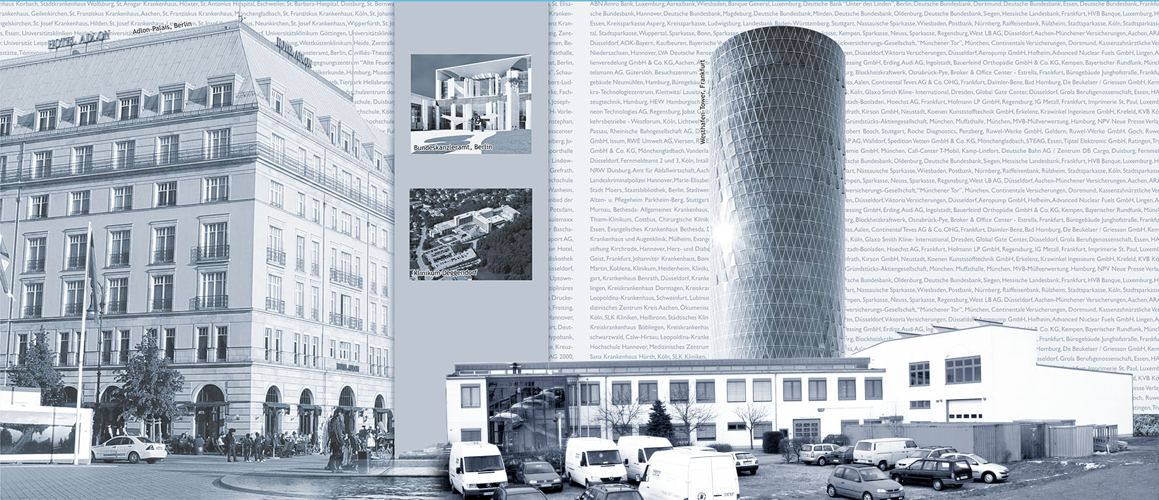 Zu den wichtigsten Referenzen gehören das Bundeskanzleramt, große Klinikbauten wie die Charité Berlin, das Universitätsklinikum Hamburg-Eppendorf, die Medizinische Hochschule Hannover, das Klinikum Stuttgart und das Klinikum der Universität München-Großhadern sowie Groß-WRG-Systeme im Leopoldina Krankenhaus Schweinfurt und in den Chemischen Instituten der Universität Bonn (510.000 m³/h).